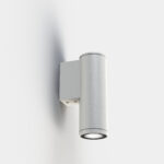Apparecchi di illuminazione da esterni caratterizzati da una sezione tubolare in alluminio di diametro 55mm. Versione a parete mono-emissione.