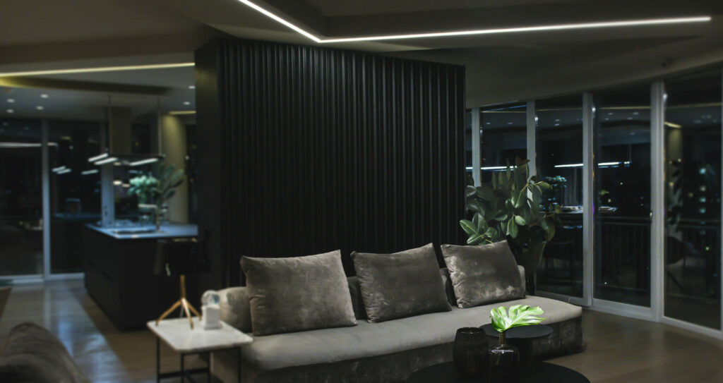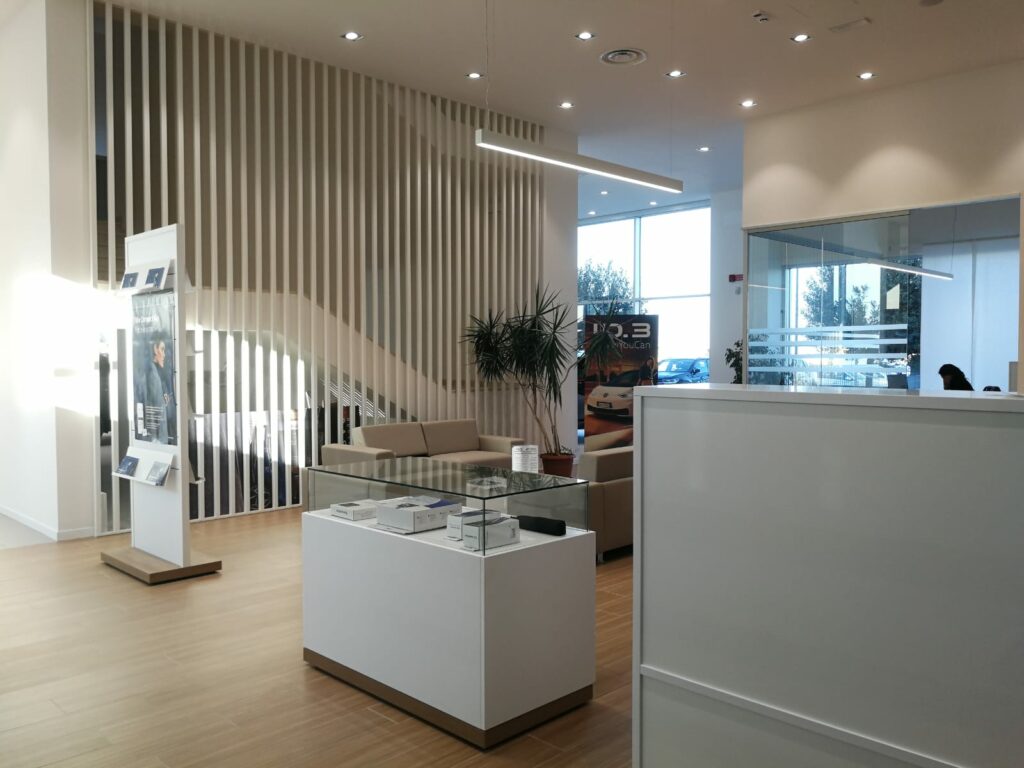 Extruded aluminum profiles 66x40mm, for ceiling, wall, suspension, recessed installation (trimless or with ledge) with integrated linear LED sources, integrated electronic drivers 230/240V. Painted or anodized finish. Opal or micro-prismatic polycarbonate diffuser, with controlled luminance (compliant with EN12464-1 standard) and end heads with Light Proof system. Available version with optic groups Leva with fixed optic, available beams 20° – 32° – 50° – 41°x18° UGR< 14. Suspension can be direct or direct/indirect emission. Extruded aluminum outercasing for brick or concrete recessed installation available as an accessory. IP40 / IP43 depending on the installation method.
