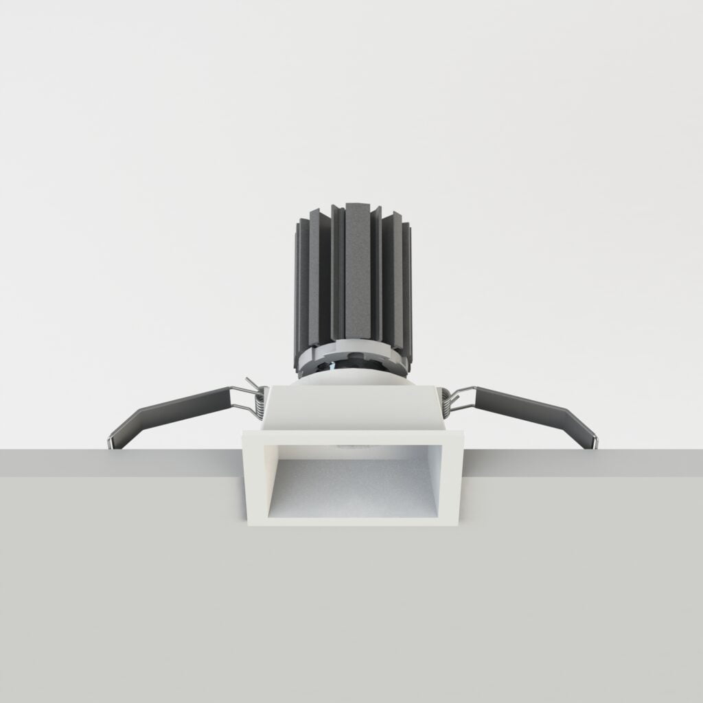 Recessed luminaires with fixed or adjustable square section stop, with back anti-glare lamp position. Optical body made of die-cast aluminum, optics in aluminum finish 99.9%. Degree of protection IP20. Also available with GU10 connection.