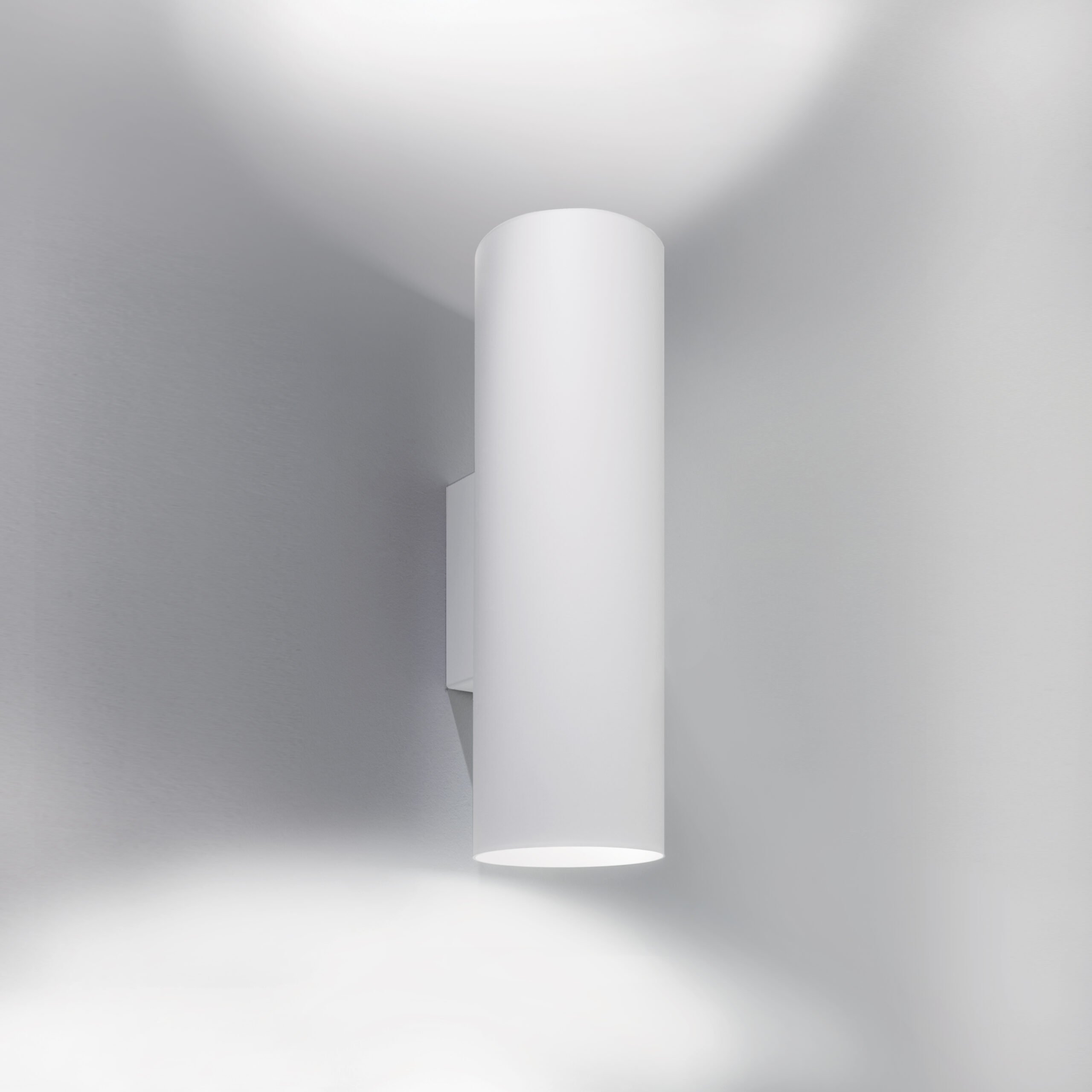 Apparecchi per interni a parete per illuminazione diretta, completi di sorgenti LED professionali o per lampade LED GU10 230V. Corpo cilindrico in estruso di alluminio finitura verniciata. Completi basetta per fissaggio a parete. Grado di protezione IP20.