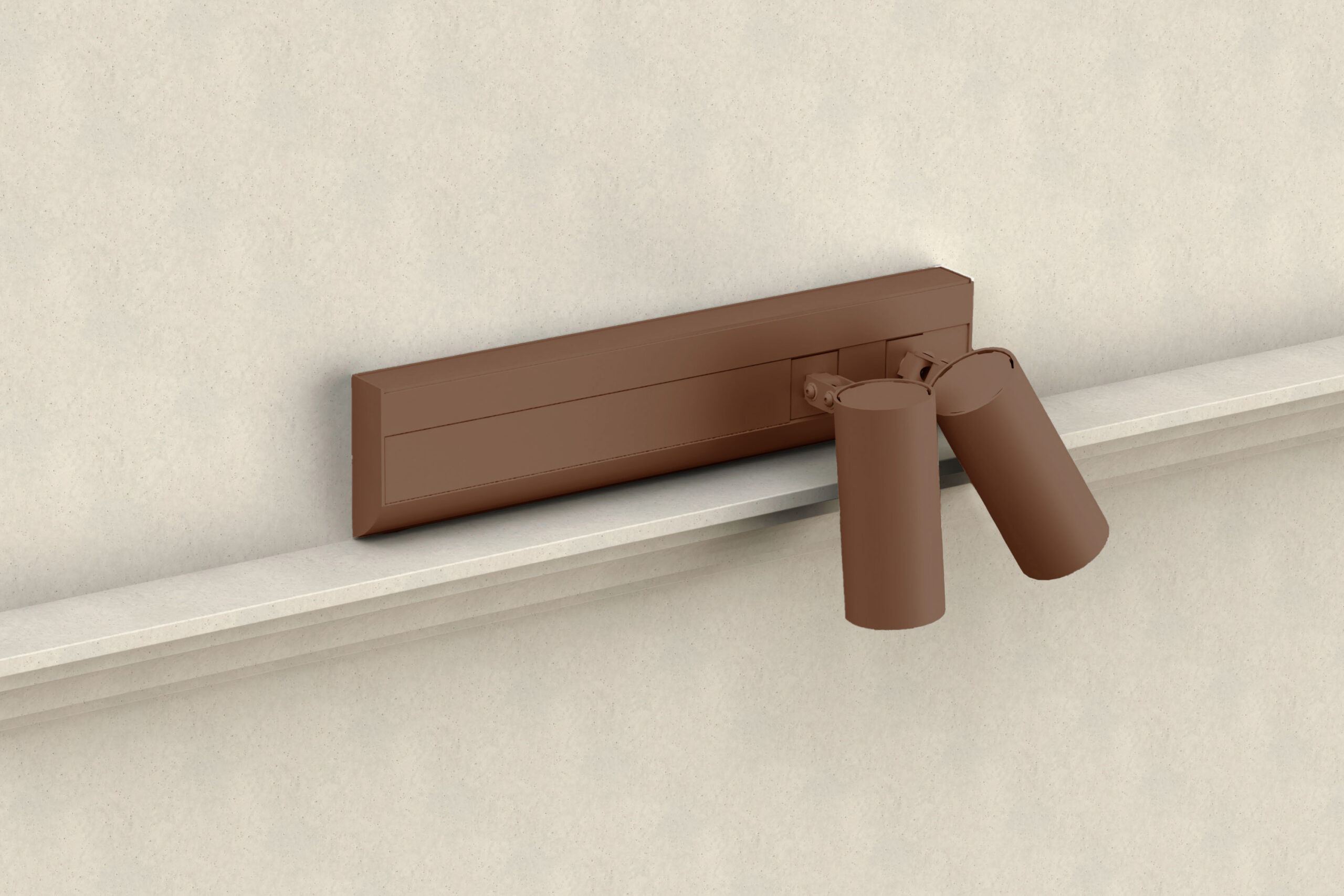 Apparecchio da appoggio o da parete per illuminazione diretta e mirata, studiato per illuminare pareti e soffitti di chiese o particolari architettonici protetti dai beni culturali. Il profilo ha la predisposizione per il passaggio dei cavi elettrici. Due possibilità di installazione, verticale ed orizzontale. Completo di sorgenti LED professionali. Corpo in metallo finitura verniciata. Grado di protezione IP40.