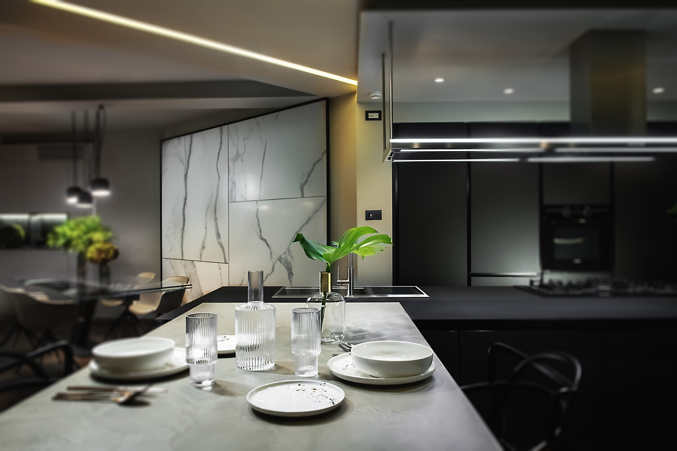 Sistema modulare per illuminazione diretta, diffusa e/o d’accento, composto da profili vuoti in estruso di alluminio verniciato o anodizzato 66×40 mm. di lunghezza predefinita o tagliabili a misura, disponibili nelle versioni a parete, plafone, sospensione, a incasso con cornice di battuta super-slim larghezza 5 mm. (61,5×40 mm.)e a incasso rasato a scomparsa totale trimless. Da integrare con sorgenti lineari LED, reglettes per lampade fluorescenti T16, proiettori con sorgente LED integrata e moduli binario max 16A 3 accensioni per inserimento di proiettori. Reglettes fluorescenti complete di alimentazione elettronica 50/60Hz 230/240V. Reglette LED con driver integrati. Da completare con le testate di chiusura laterali con sistema Light Proof, schermo diffondente in PC opalino bianco o microprismatico a luminanza controllata (conforme normativa EN 12464-1), profili di chiusura, di lunghezza predefinita o tagliabili a misura, o griglia dark-light in alluminio ad alta specularità e staffe di fissaggio o cavi di sospensione. Grado di protezione IP40.