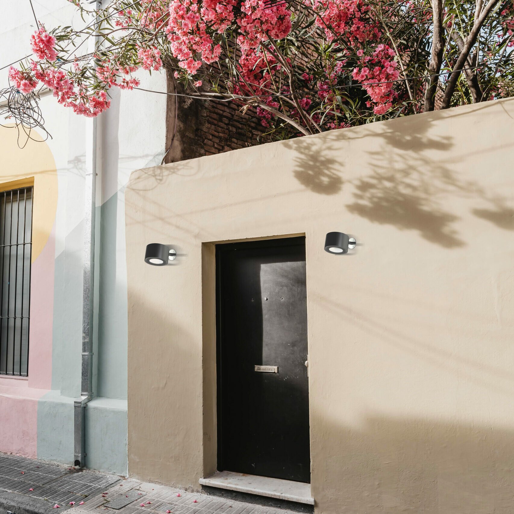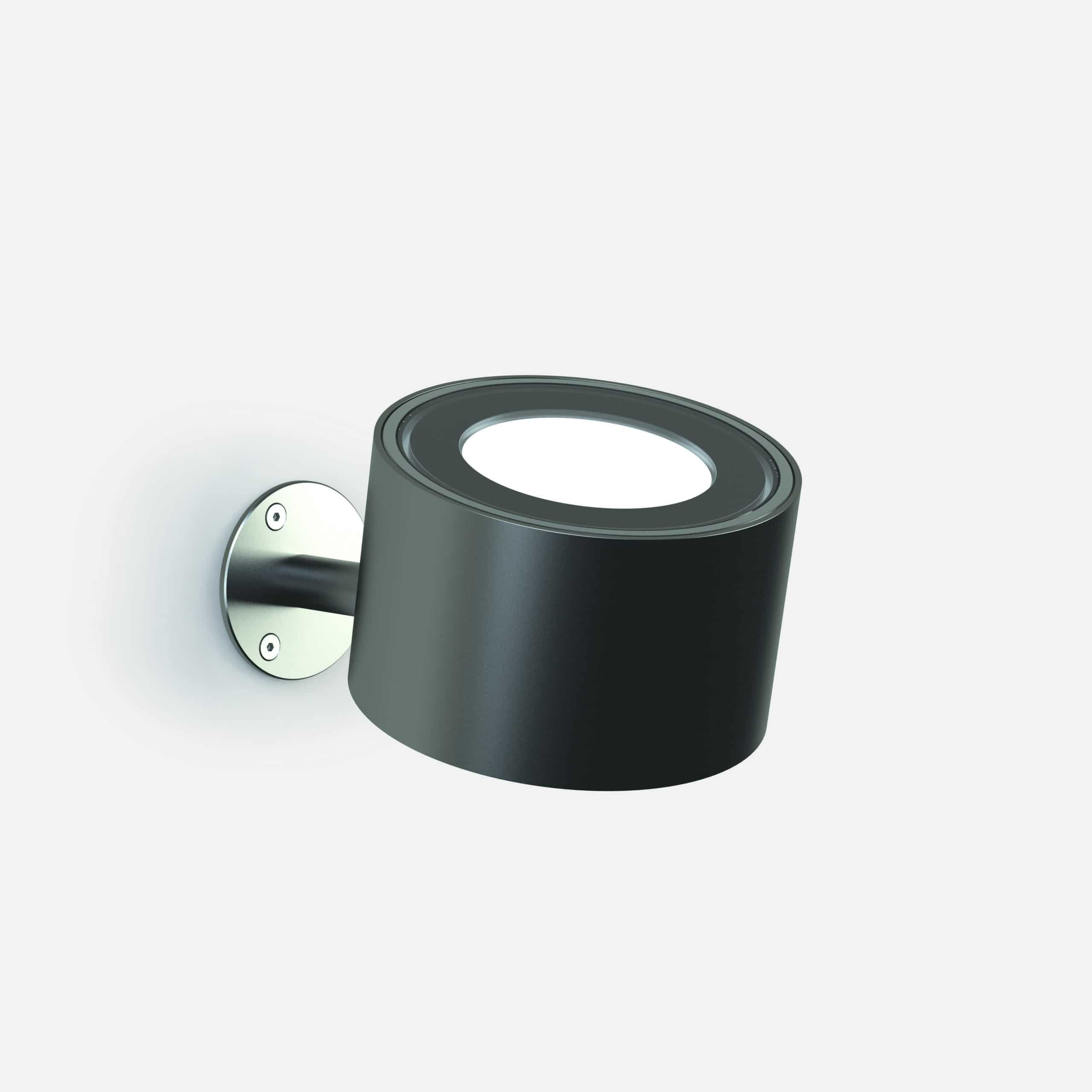 Apparecchio da esterno da parete, ⌀120 orientabili  18W.  Sono disponibili versioni con sorgente LED per luce d’accento. Grado di protezione IP66.