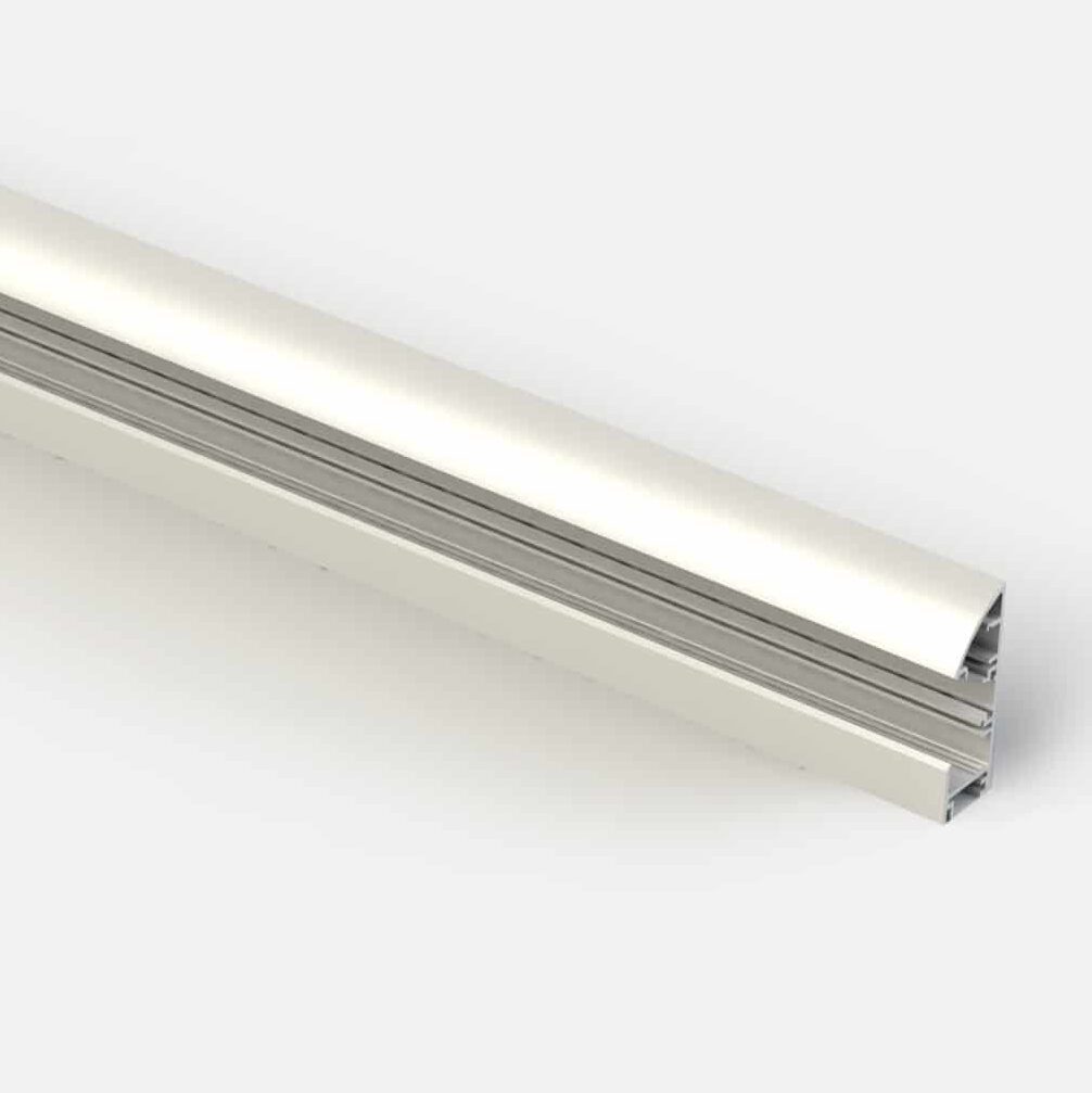 Profilo rettilineo realizzato in estruso di alluminio 6060 e verniciato a polvere epossidica color microtexturizzato, forma dal design patentato con una tubolarità accessibile per l'inserimento di elettronica e passaggio cavi.