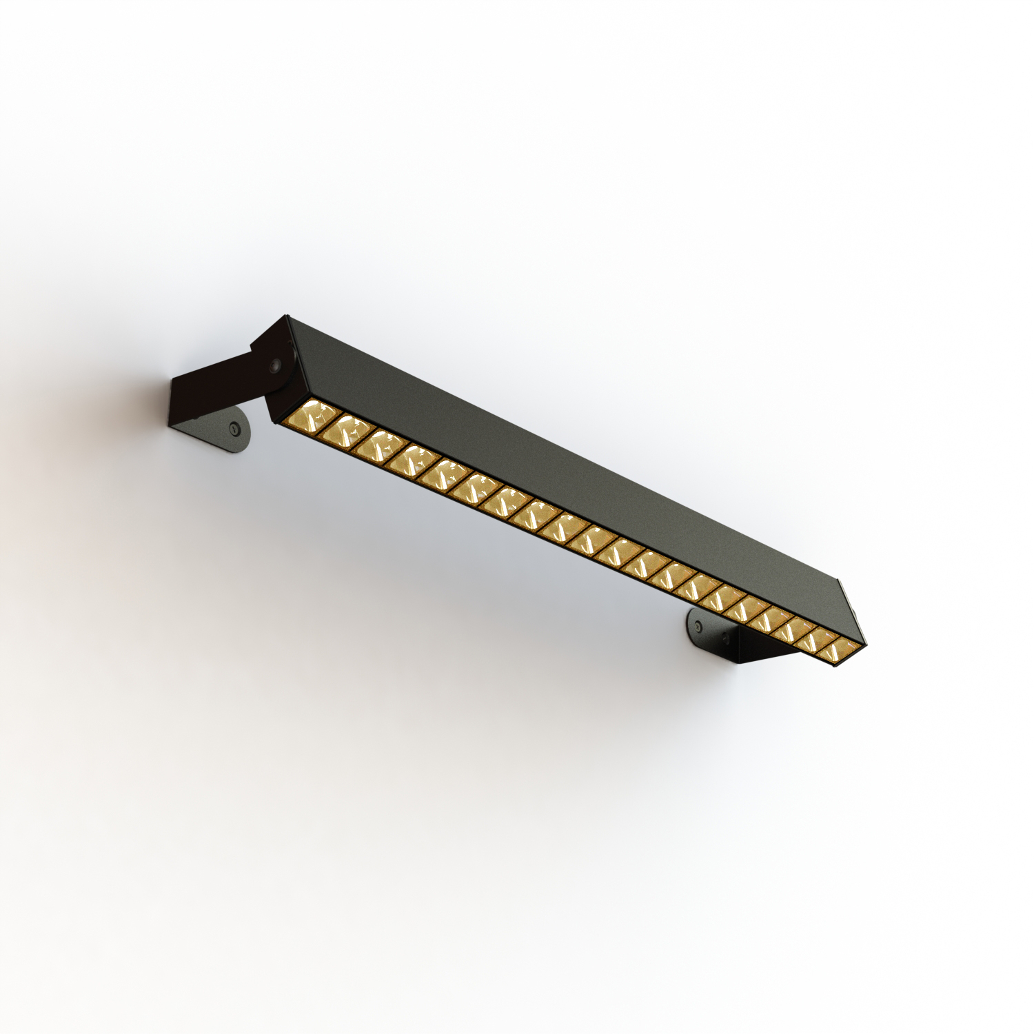 Apparecchio da esterno di misura 615 mm. E’ costituito da un profilo di estruso di alluminio rettangolare, corpo dell’apparecchio, al cui interno sono alloggiati in fila di 20 gruppi ottici – composti di LED professionale chip on board 2,2W , lente e housing antiabbagliamento UGR<14 - permettendo quindi di raggiungere flussi luminosi molto elevati. Ottiche spot, flood, wide e Asymmetric.… leggi tutto