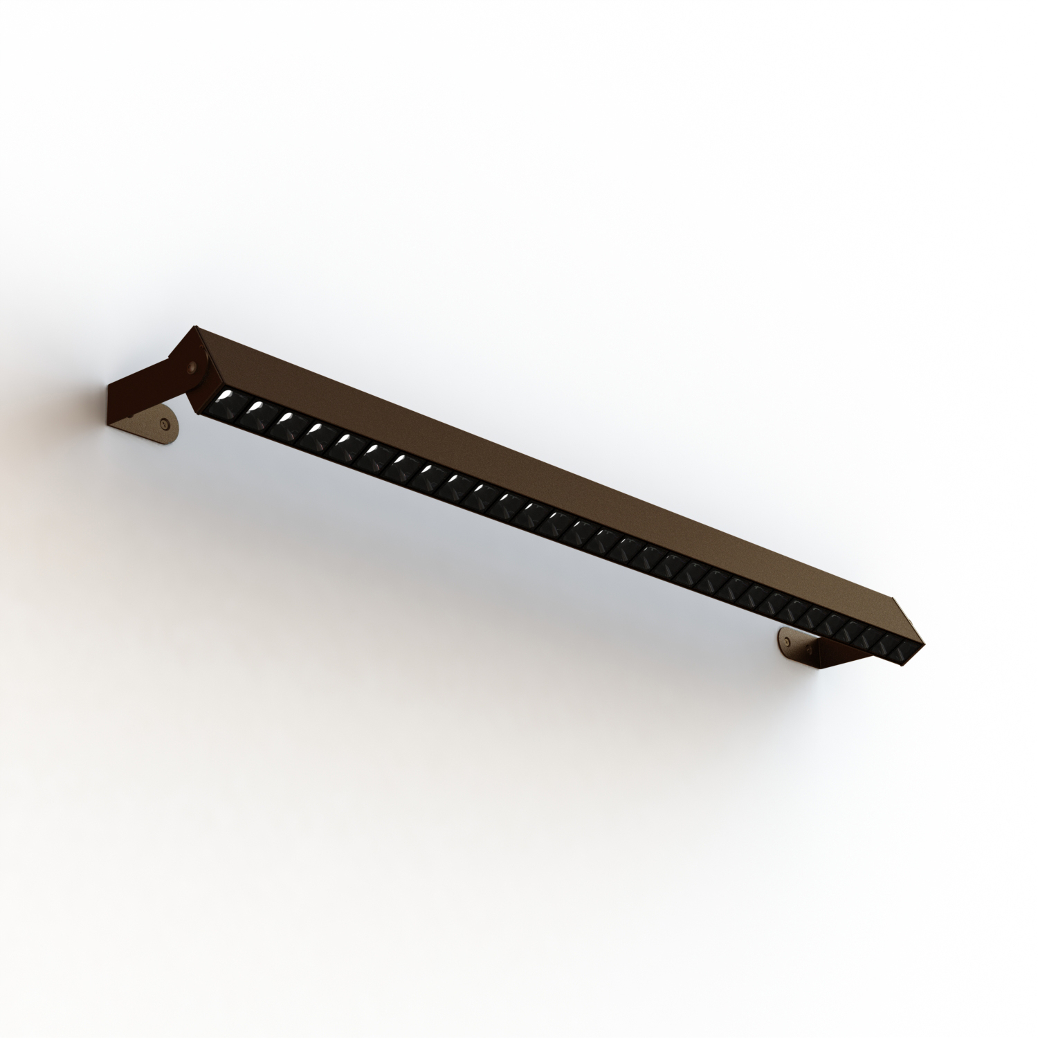 Apparecchio da esterno di misura 900 mm. E’ costituito da un profilo di estruso di alluminio rettangolare, corpo dell’apparecchio, al cui interno sono alloggiati in fila di 30 gruppi ottici – composti di LED professionale chip on board 2,2W , lente e housing antiabbagliamento UGR<14 - permettendo quindi di raggiungere flussi luminosi molto elevati. Ottiche spot, flood, wide e Asymmetric.… leggi tutto