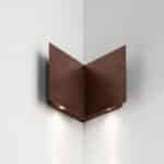 Apparecchio per angolo esterno, mono-emissione per illuminazione d'accento. Gruppo ottico completo di sorgenti LED professionali, completi di alimentatore. Versione ad angolo interno 90° con corpo in metallo finitura verniciata. Grado di protezione IP54.
