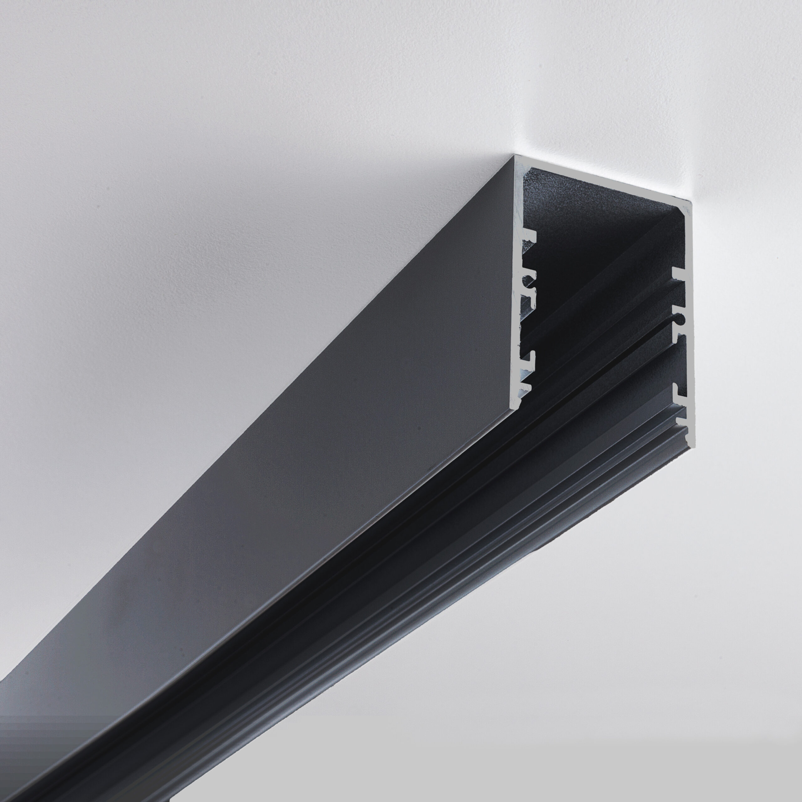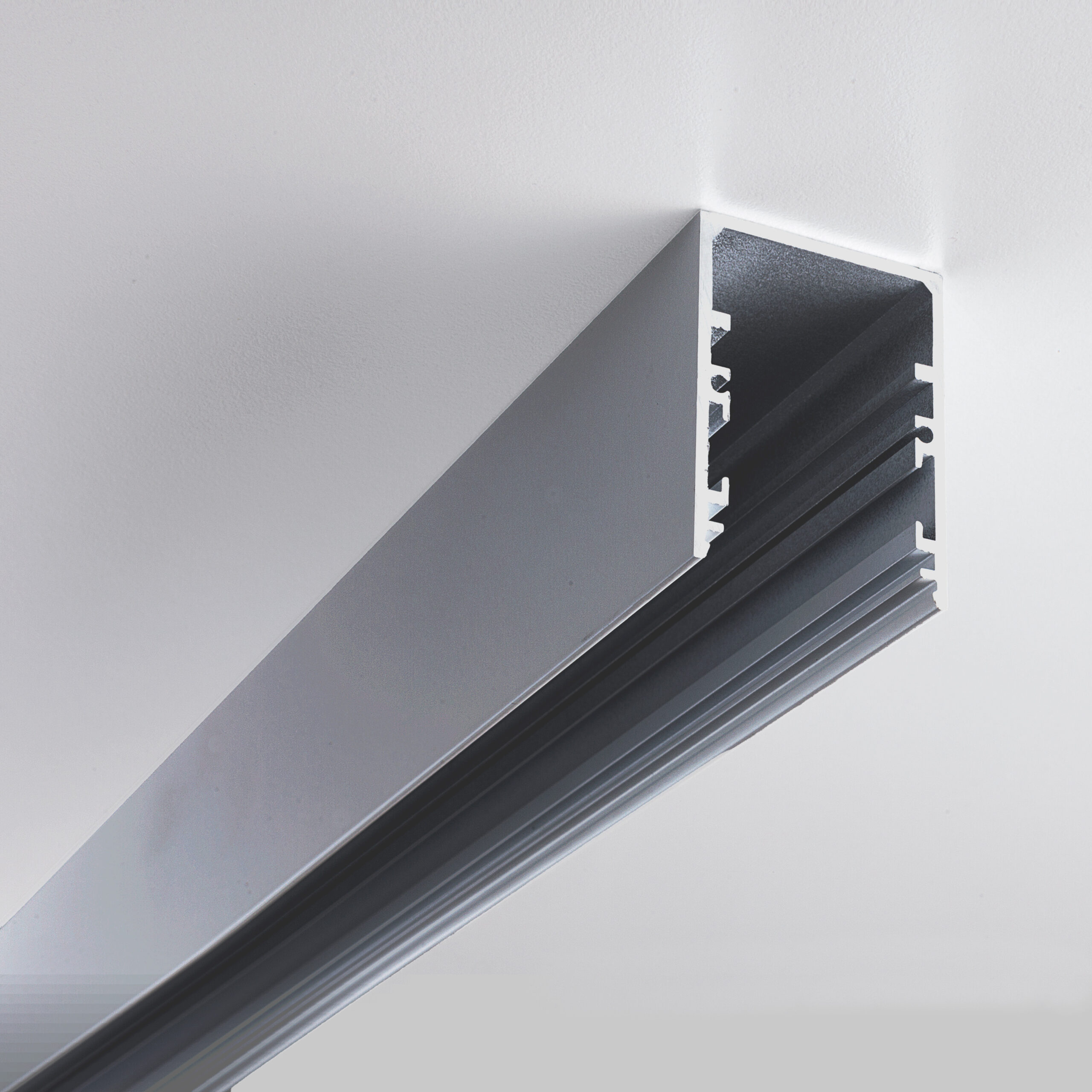 Sistema modulare per illuminazione diretta, diffusa d'accento e wallwasher, composto da profili vuoti in estruso di alluminio verniciato o anodizzato 62x32 mm. di lunghezza predefinita o tagliabili a misura, disponibili nelle versioni a parete, soffitto, sospensione, incasso rasato a scomparsa totale trimless o a incasso con cornice di battuta super-slim larghezza 5 mm. Da integrare con sorgenti lineari LED, spot… leggi tutto