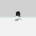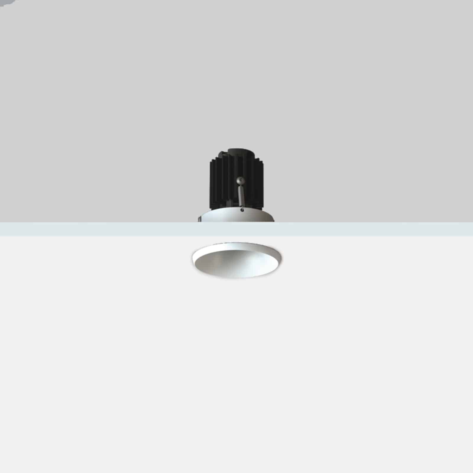 Apparecchio da incasso indoor e outdoor per cartongesso con cornice, tonda, con ottica fissa per illuminazione d'accento. Sorgente luminosa in posizione arretrata antiabbagliamento. Con sorgente LED integrata con riflettore metallizzato in alluminio puro 99,9%. Corpo e gruppo ottico in alluminio verniciato. Alimentazione remota disponibile come accessorio. Grado di protezione IP20/IP54. Classe di isolamento III.