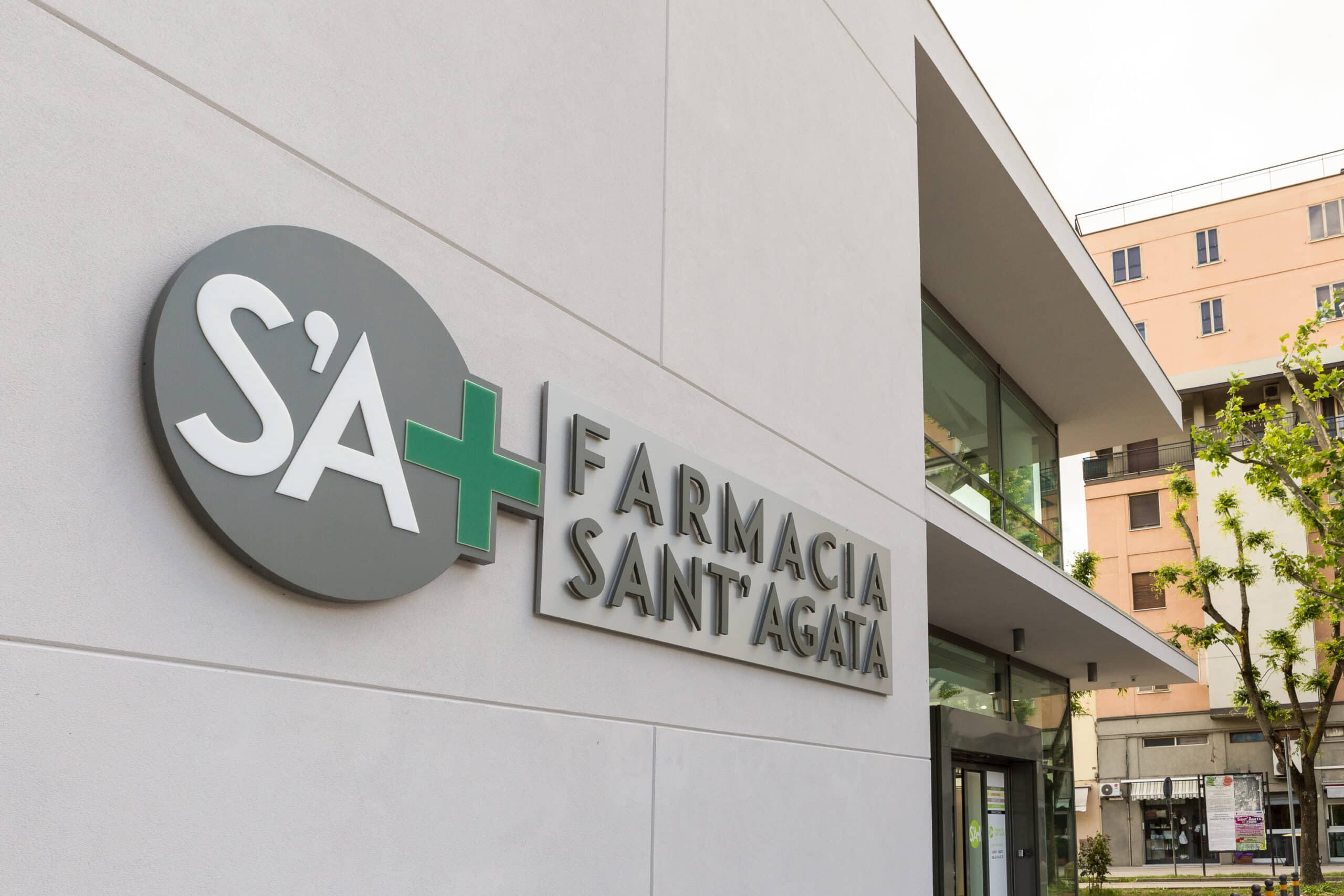 Il progetto della nuova Farmacia Sant’Agata nasce dall’idea del dottore Massimo Rosi di realizzare una farmacia ex novo in un lotto poco distante dal precedente punto vendita. Tale scelta ha permesso di aumentare notevolmente la superficie di vendita e di servizi, realizzando una struttura su due livelli servita da un piazzale parcheggio: farmacia, sale estetiche e di consulenza al piano terra, ambulatori, automazione e spazi di stoccaggio al primo piano.