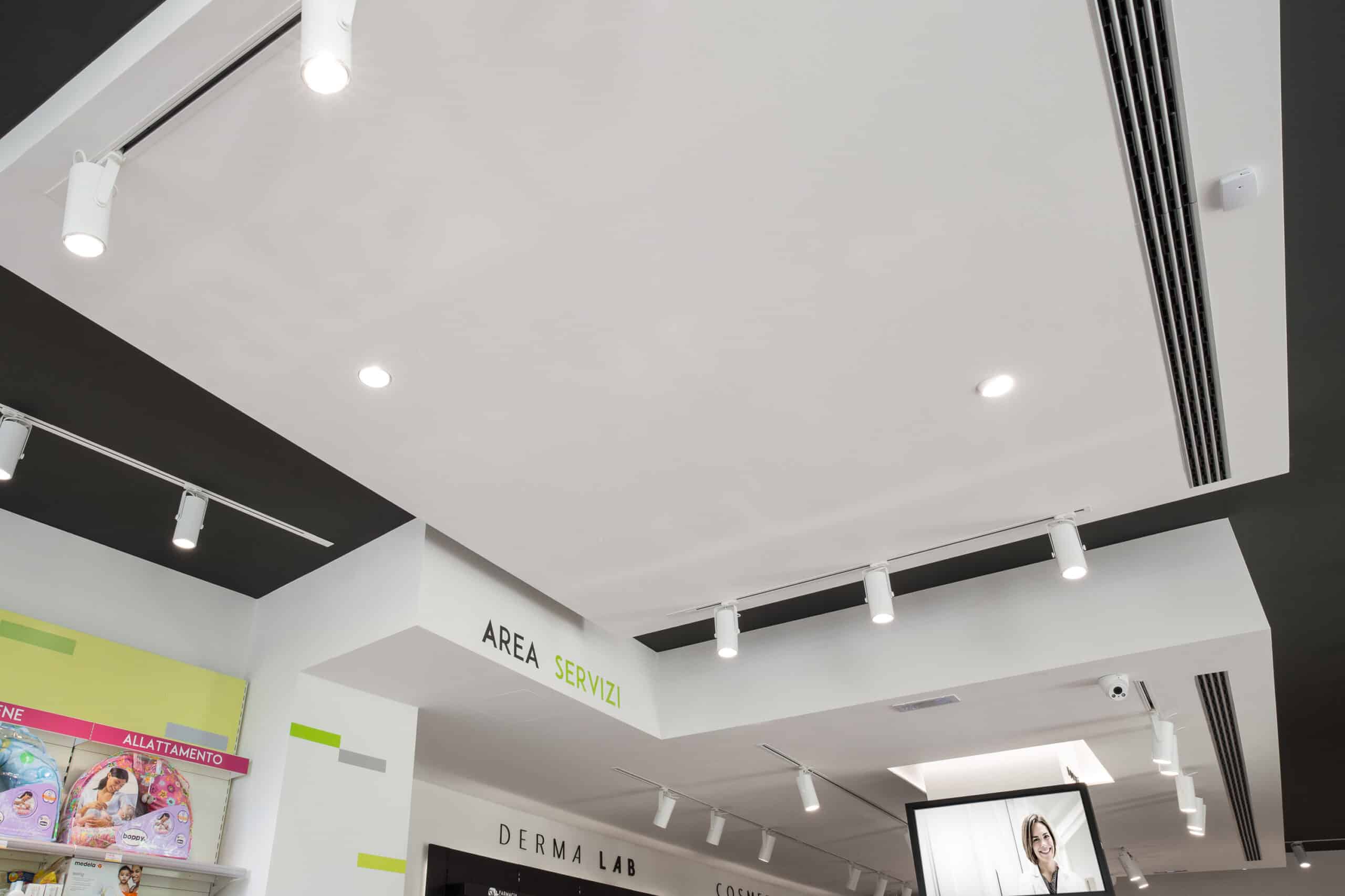 L’illuminazione svolge un ruolo molto importante nell’accompagnare il farmacista nel colloquio rassicurante e confidenziale che si instaura con il cliente, indicando i persorsi ed evidenziando i settori, le linee i prodotti.