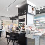 L’area beauty, il vero fiore all’occhiello della farmacia, uno shop in shop, è contraddistinto da arredi sospesi e luminosi, banchi ricercati degni di una profumeria francese, in cui marchi di alto e medio livello si alternano per i settori uomo e donna.