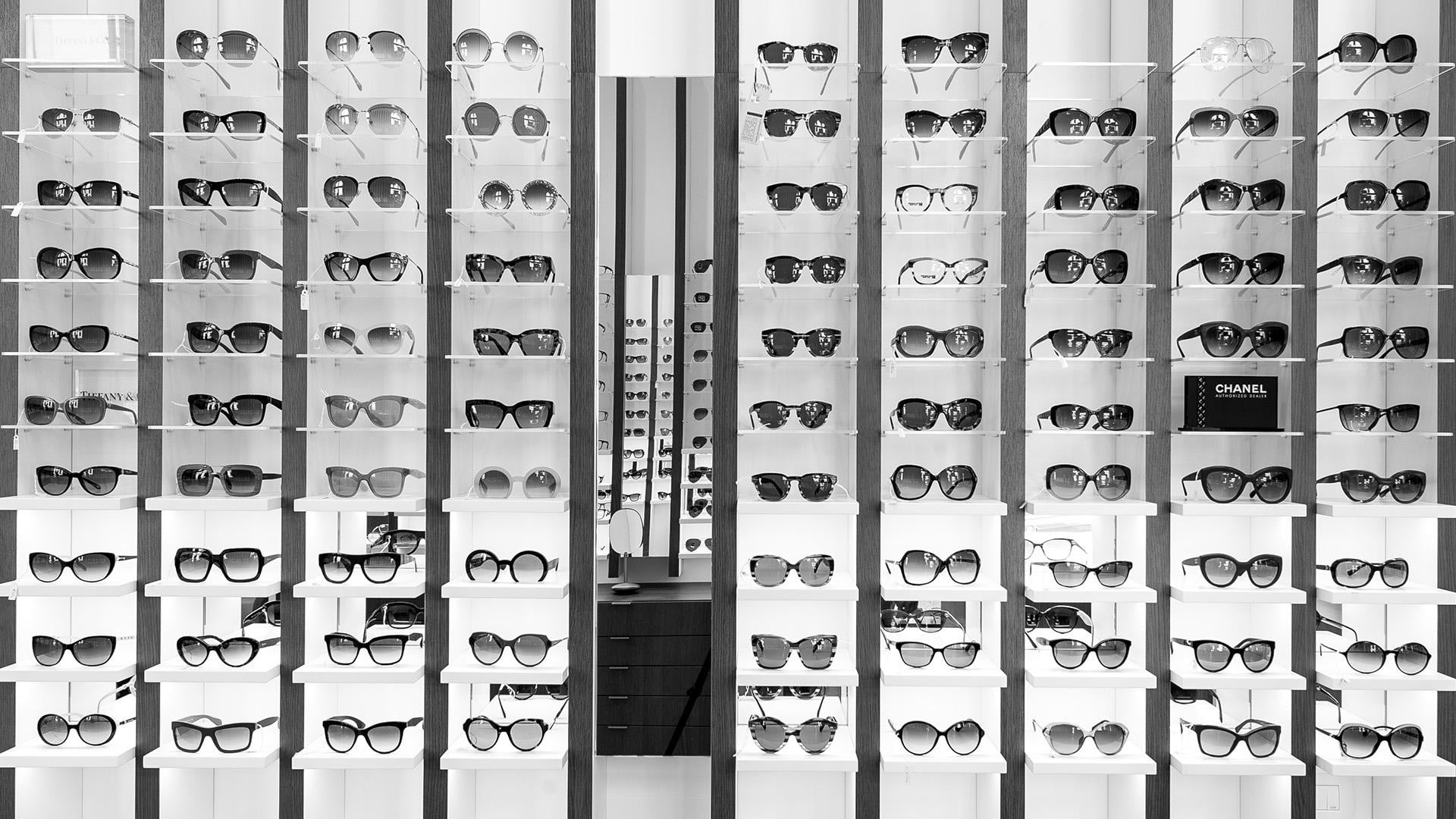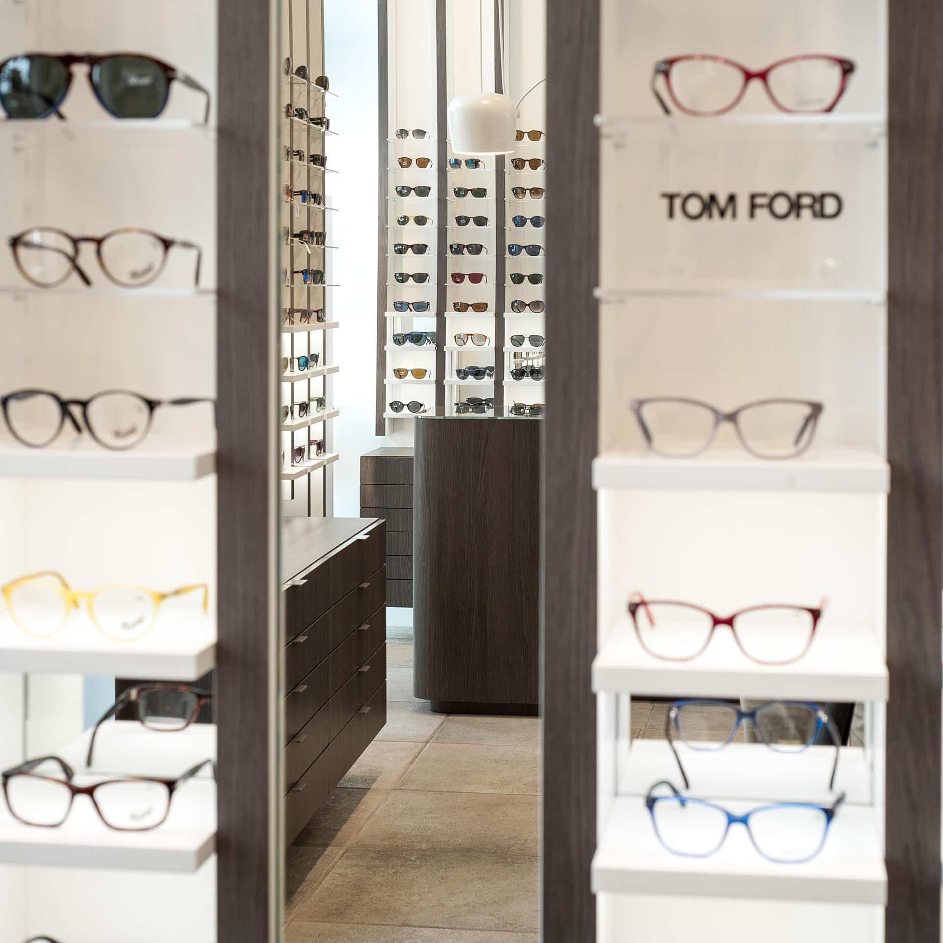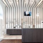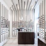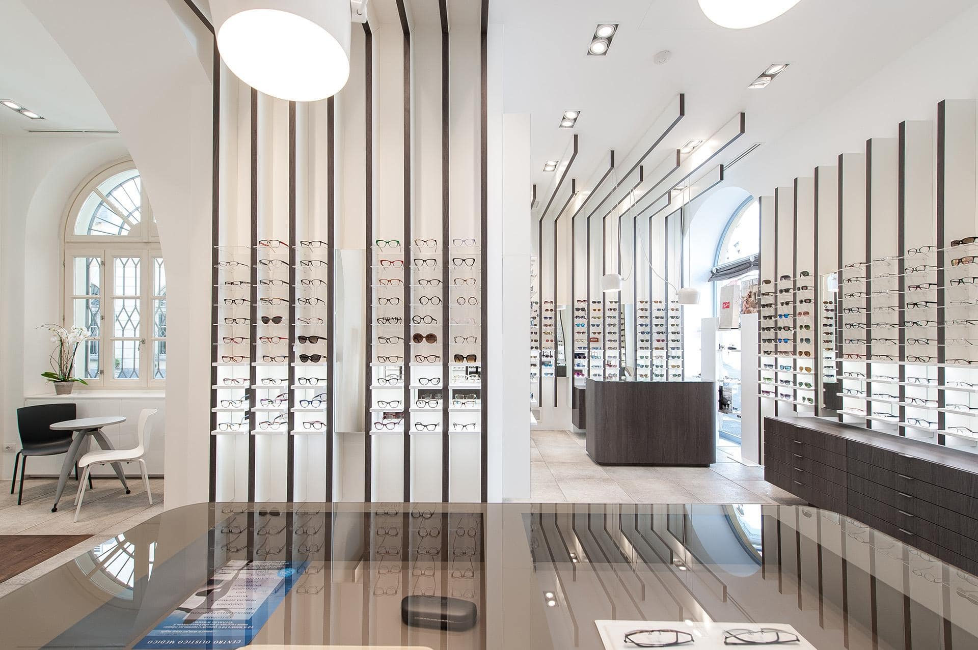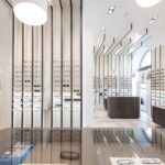 The design’s process challenge was to expose at least 500 glasses giving however to the customer the feel to be in a boutique and not in a department store. The store’s concept turns around the vertical blades that run from the floor, on the walls, to the ceiling expanding the perception of the space and becoming an elegant "structure" for showing glasses on light and backlit Plexiglas shelves. The final customer perception is not a confusing display of numerous articles, but a feeling of linearity and refinement in showing each pair of glasses.