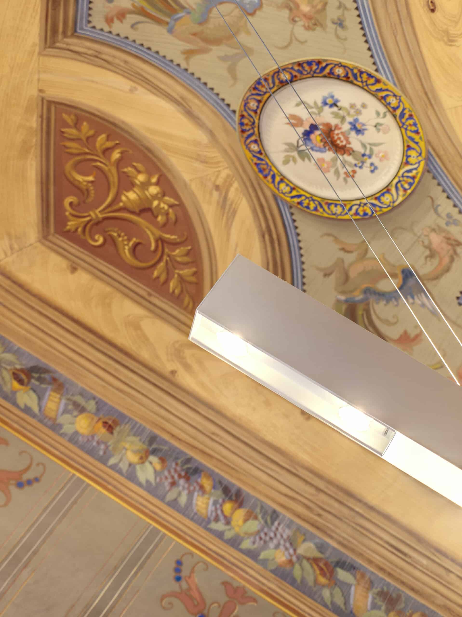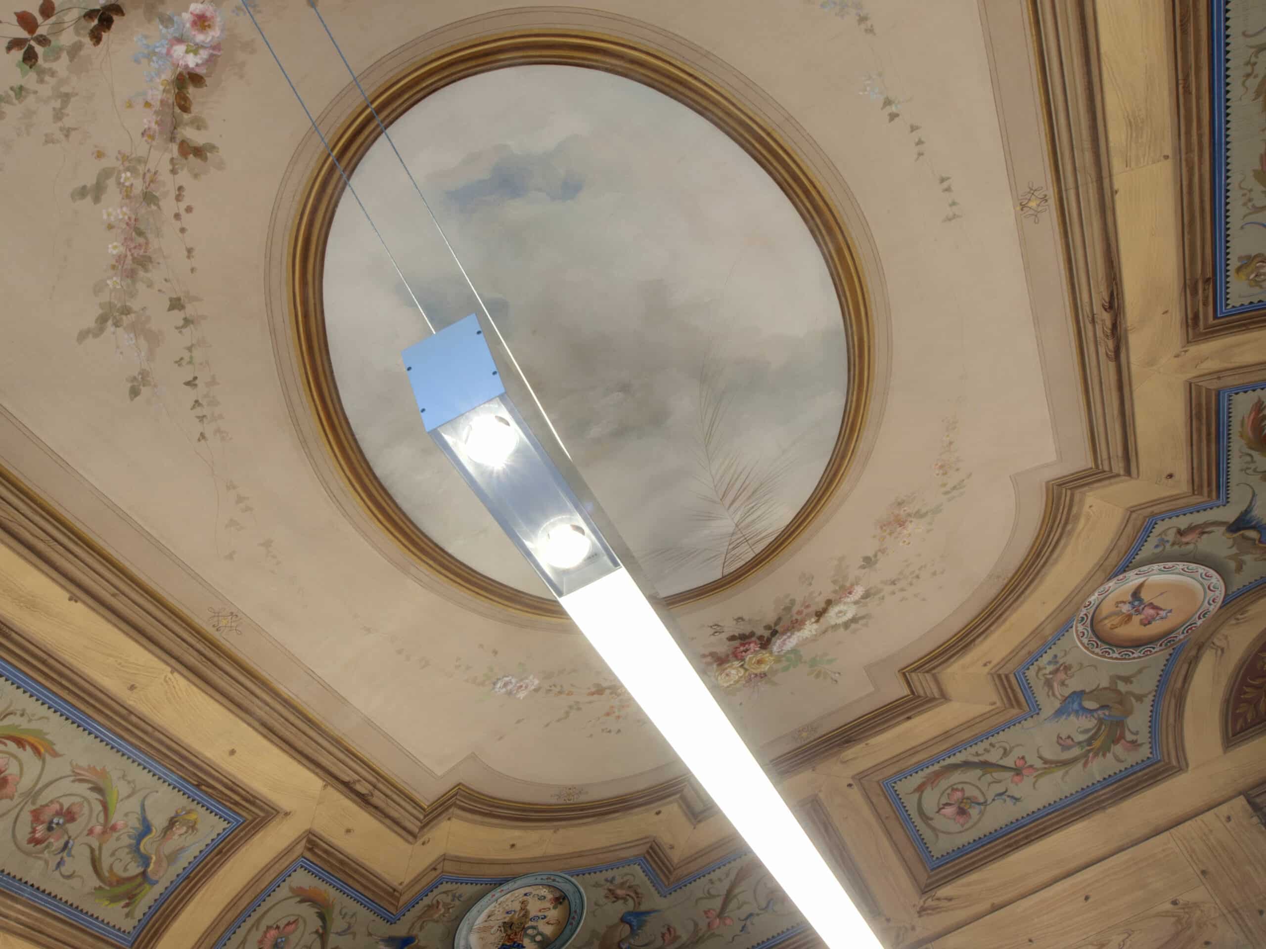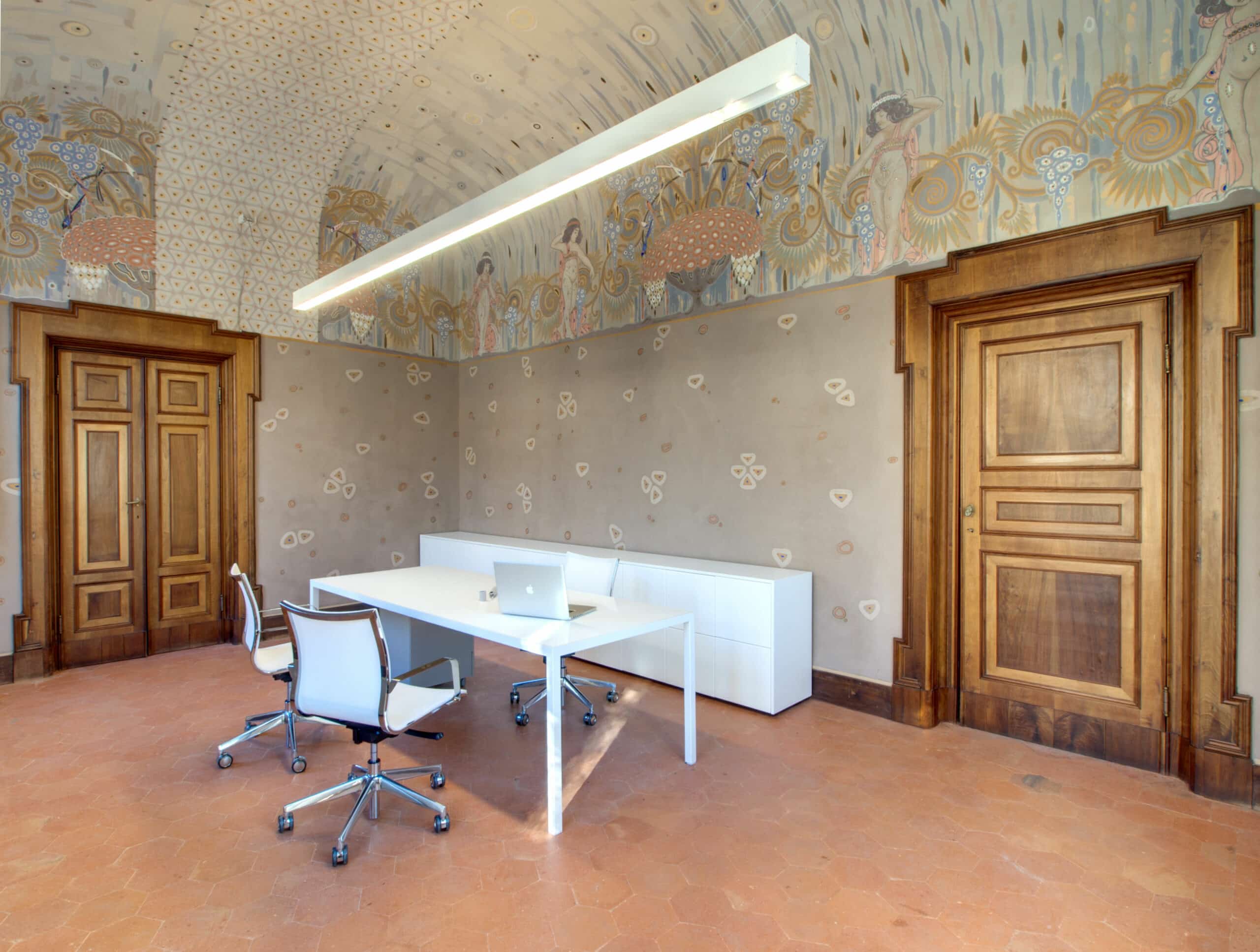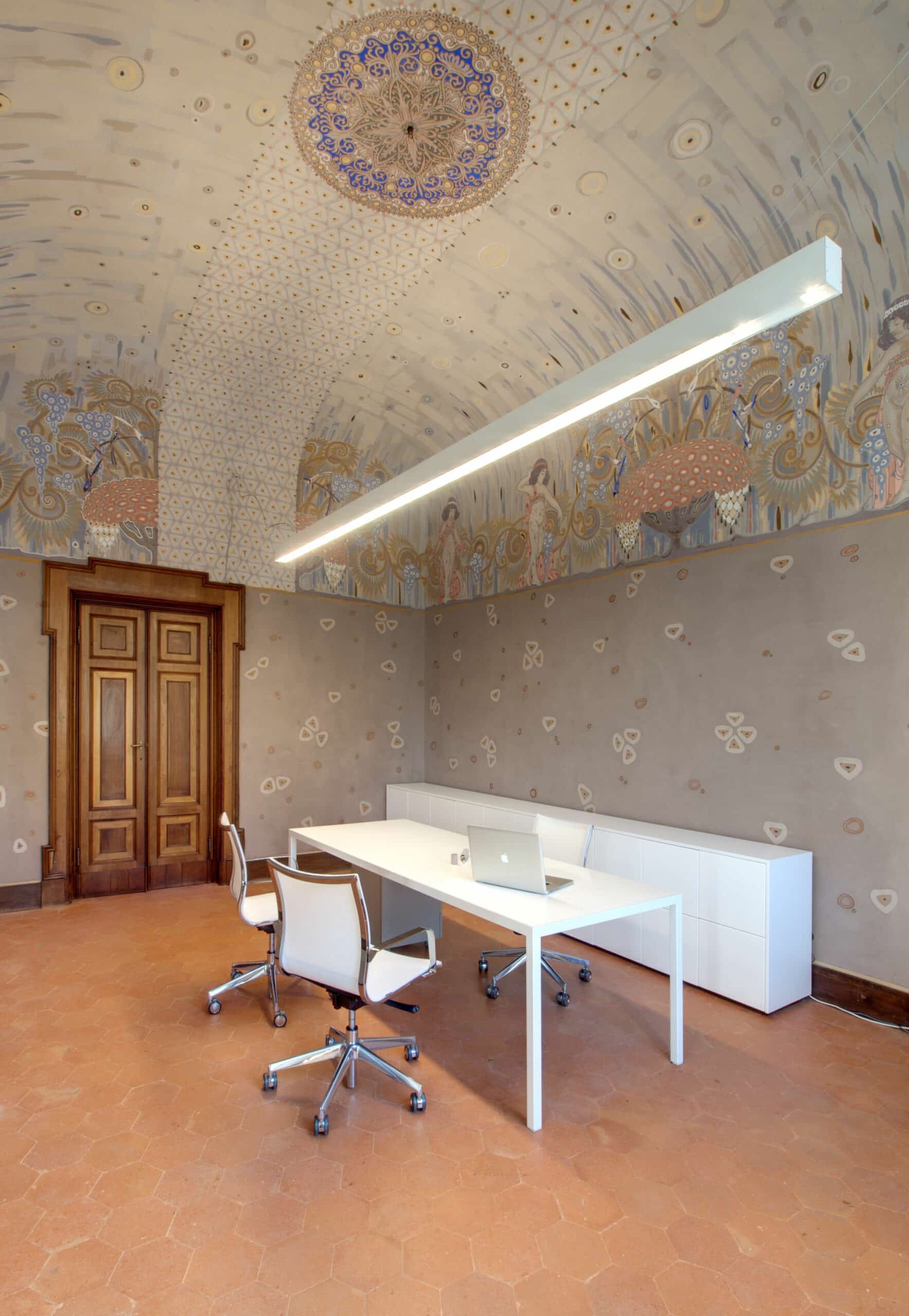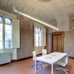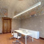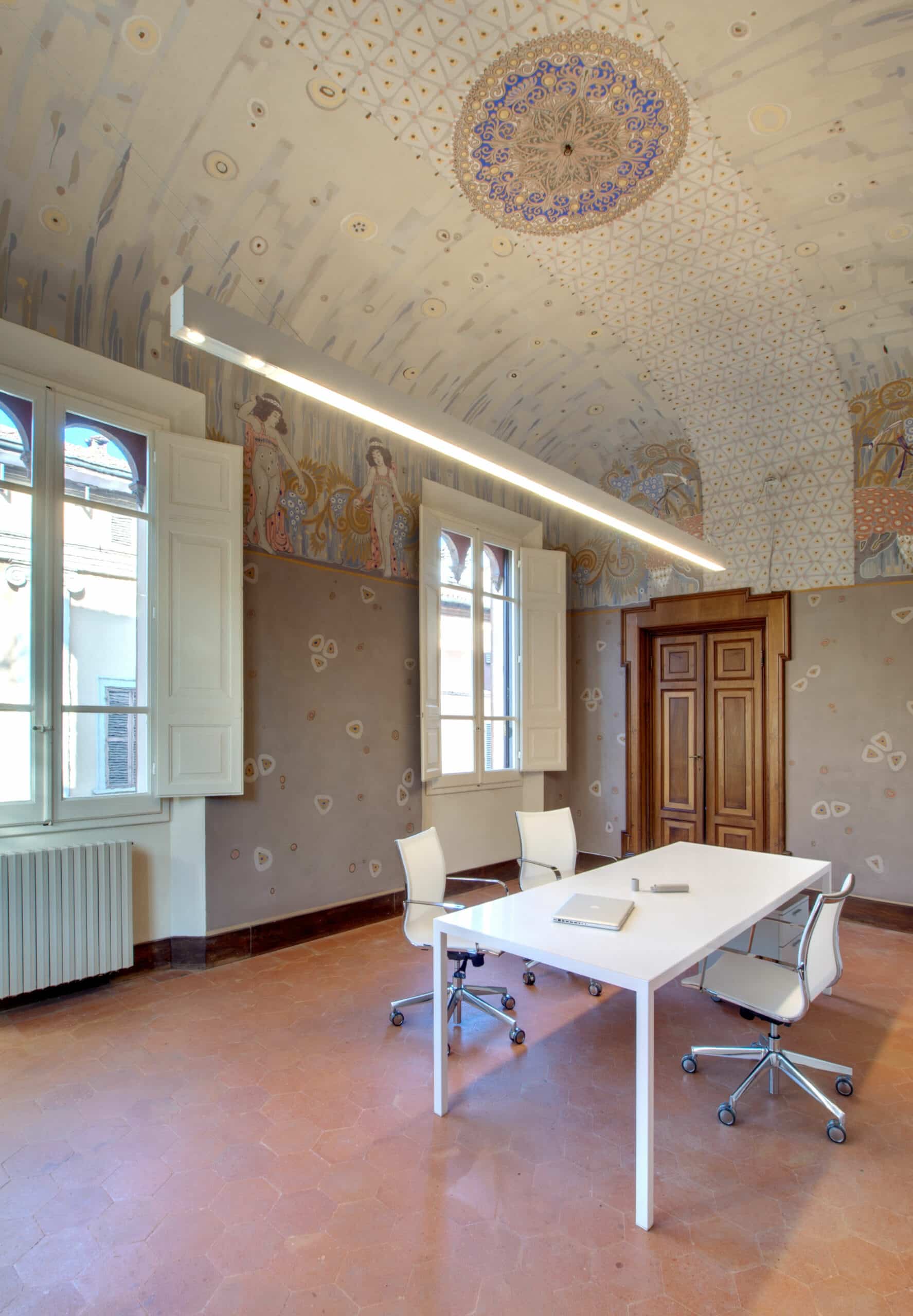 La sede dello studio di architettura Arklab è situata in un palazzo storico del centro della città di Imola i cui locali sono sapientemente affrescati. File 2H sistema si è dimostrata un ottima soluzione illuminotecnica, le sue linee così pulite hanno reso l'accostamento estremamente naturale. E' stato scelto l'elemento a luce mista fluo + spot.